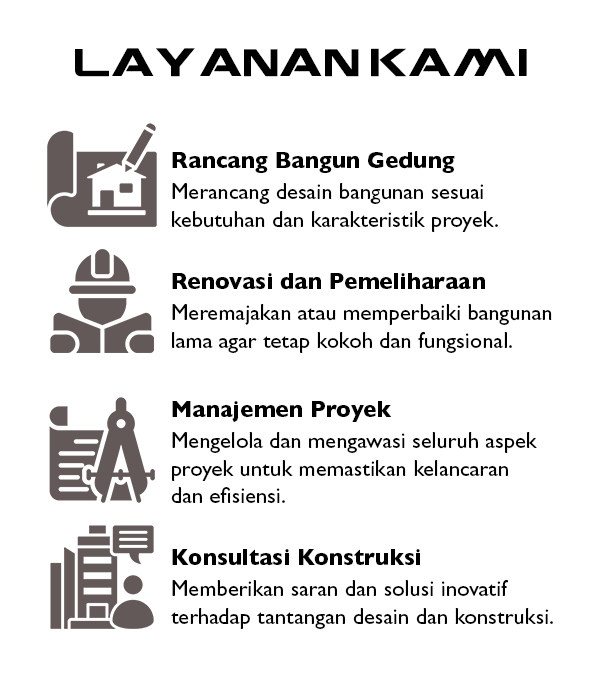 Rancang Bangun Semesta Engineering adalah perusahaan yang bergerak di bidang jasa rancang dan bangun gedung, yang berkomitmen untuk menghadirkan solusi konstruksi berkualitas tinggi. Dengan pengalaman dan keahlian di industri konstruksi, kami melayani berbagai kebutuhan pembangunan, mulai dari perencanaan, desain, hingga pelaksanaan proyek. Kami hadir untuk memberikan hasil yang tepat waktu, tepat mutu, dan tepat biaya, sesuai dengan visi kami dalam memberikan layanan profesional kepada setiap klien.